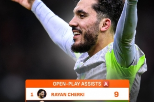 本赛季在英超赛场上,谢尔基运动战已送出9次助攻位居榜首,哈兰德和B费以7次助攻并列次席。