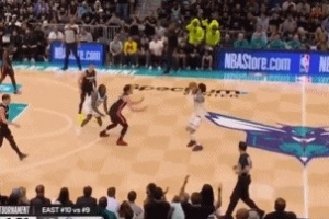 这滞空逆天!布里奇斯超远距离滑翔拉杆换手上篮 黄蜂领先5分!