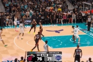 这滞空逆天!布里奇斯超远距离滑翔拉杆换手上篮 黄蜂领先5分!