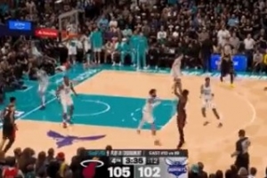 这滞空逆天!布里奇斯超远距离滑翔拉杆换手上篮 黄蜂领先5分!