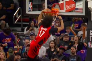 这滞空逆天!布里奇斯超远距离滑翔拉杆换手上篮 黄蜂领先5分!