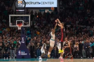 这滞空逆天!布里奇斯超远距离滑翔拉杆换手上篮 黄蜂领先5分!