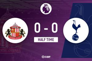 上半场补时5分钟,第46分钟,桑德兰左路定位球机会开到禁区前点头球摆渡后点门前布罗比推射被金斯基神勇扑出。↓